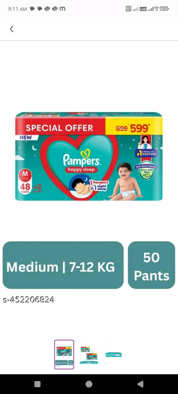 Pampers Diaper M Size Pack Of 50pcs