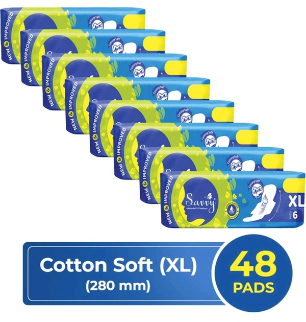 Savvy Maxi Cotton Sanitary Pads For Women Pack Of 8 (8×6 = 48 ) Piece Combo Pack